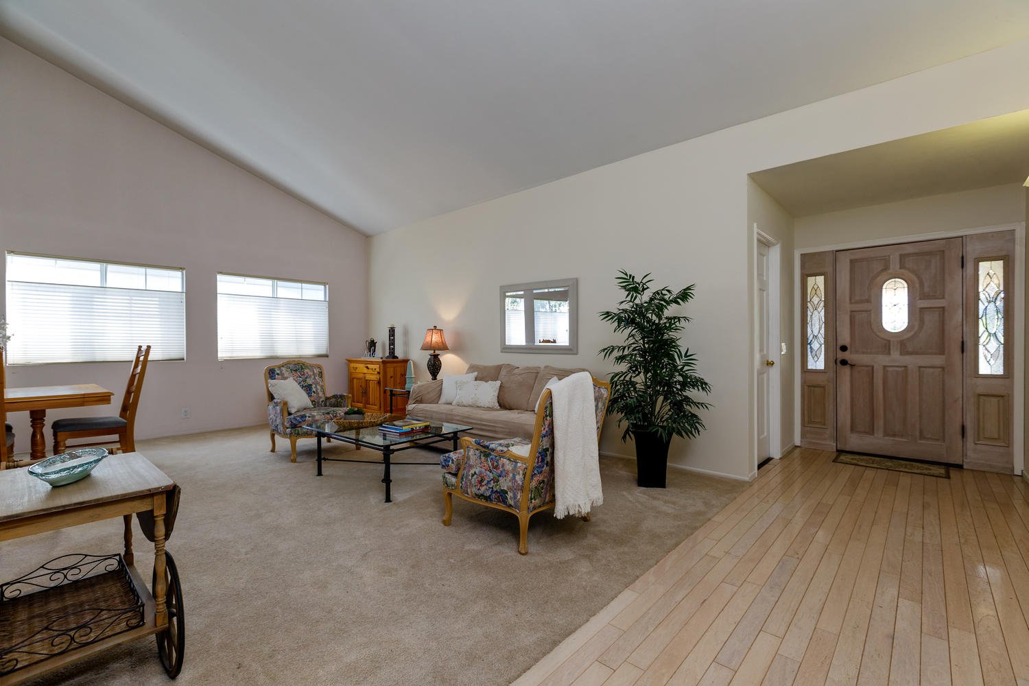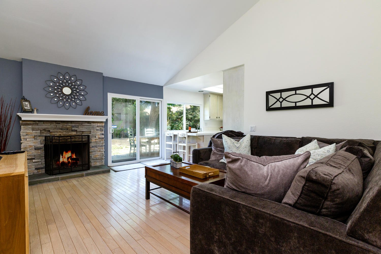 A Home that Impresses starting with Beautiful Curb Appeal w/Gorgeous Landscaping, Custom Walkway and a Private and Cool Entrance. Large & Open Living Room welcomes with Wood Floors & Vaulted Ceilings and joins to a Dining Room with a Wall of Windows. Family Room with Wood Floors, Upgraded Stacked Stone Fireplace and Double High Ceilings and Slider to yard. Kitchen with Breakfast Bar, Newer Stove, Microwave & Dishwasher opens to Family Room & looks out to Big Back Yard and Entertaining area. Master Bedroom Suite has High Ceilings, Double Doors to second Backyard Patio Area and Large Closet Dressing Area going into Master Bathroom with Walk In Shower. Three additional Large Bedrooms. Back yard has Lush Mature Landscaping, Sandbox, Garden Beds w/Mature Producing Plants and Two Patio Areas for Relaxing and Entertaining. Home located in popular Thurgood Marshall, Fremont and Sierra Linda Schools area. Home is just minutes from The Collection & River Ridge Golf Course going one way and a few more minutes to the Beach and Sand going the other direction. Located on a Lovely Street and Neighborhood. You will love this home.