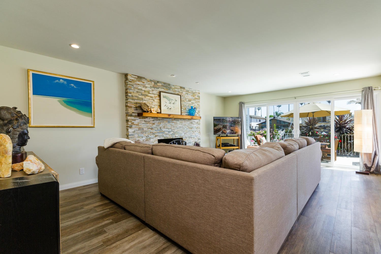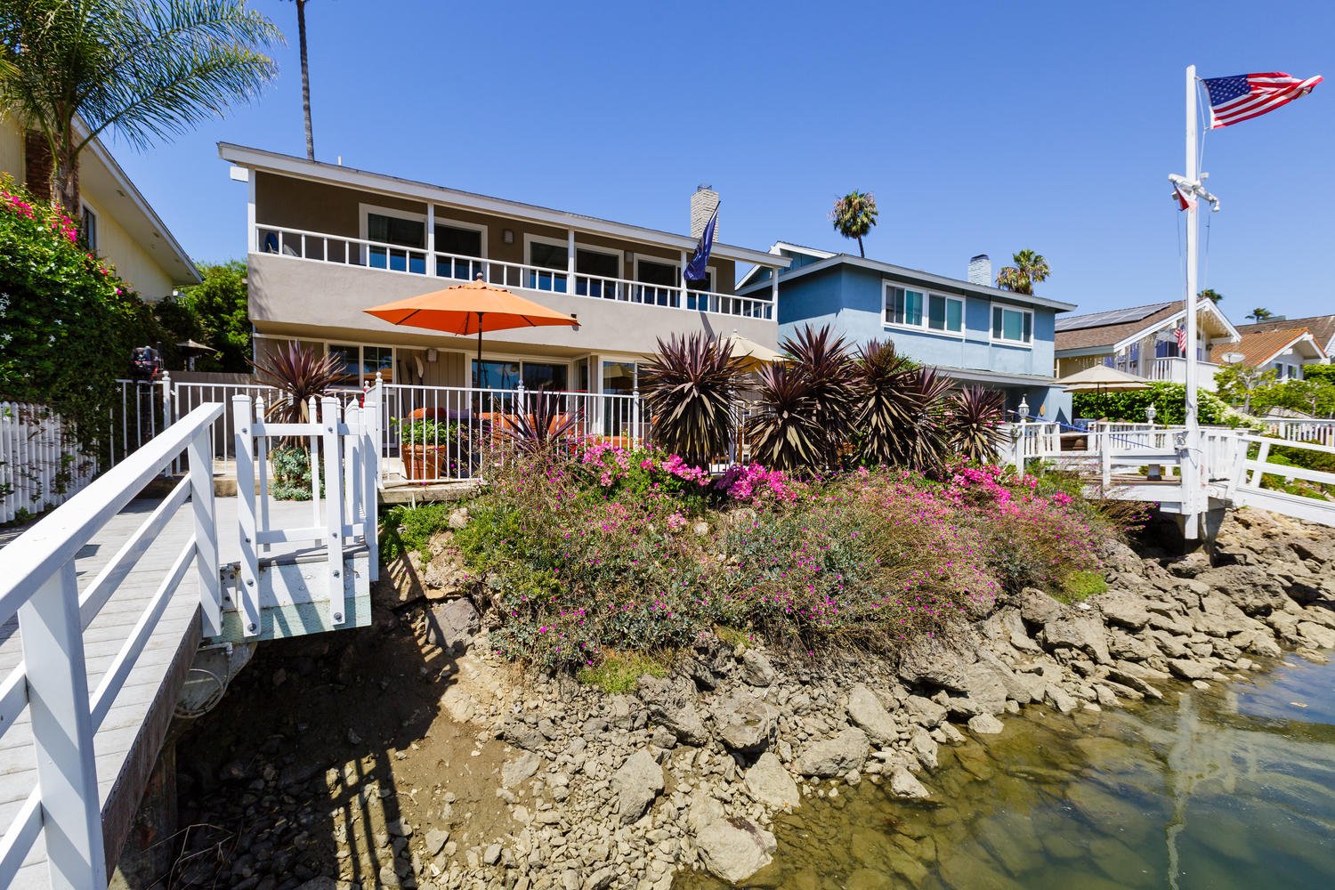 Simple Tranquility. A Beautifully Remodeled Ventura Keys, Water Front, 35 foot boat dock home. Breathtaking Views from All Living Areas & Bedrooms. This home welcomes w/Italian Ceramic Tile & Quality Engineered Flooring ushering you into an Open Livingroom w/Gorgeous Stacked Stone Fireplace looking out to Amazing Water & Boat Views. Remodeled Designer Kitchen boasts of Newer Cabinetry, Countertops, High-end Appliances, Plumbing & Electric w/ a great Island Bar perfect for entertaining. Casual Dining Area & Formal Dining Room (now used as an office)with double doors out to Private patio and Garden Area w/Raised Planter Boxes. Downstairs finishes w/Newer Bathroom w/Upscale Tile & Indulgent Rain Shower. Separate Laundry Nook. Upstairs Spacious Master Bedroom Suite w/Double Doors to a Large Refurbished View Deck helping you enjoy early mornings & late evenings with a Feeling of Sanctuary. Newer Windows & Doors. Mirrored Closet Doors. Newer Upstairs Carpet. Rebuilt Fireplace. Newer Electrical Panel w/ 240 Voltage. Fully Landscaped California Drought Resistant Yard. Huge Outdoor Entertaining Patio Deck leads you to your own Gangway & Private Dock. Located 3 doors down from Main Channel & Big Beach! Cul-de-Sac Location. This Home Exudes Quiet Luxury